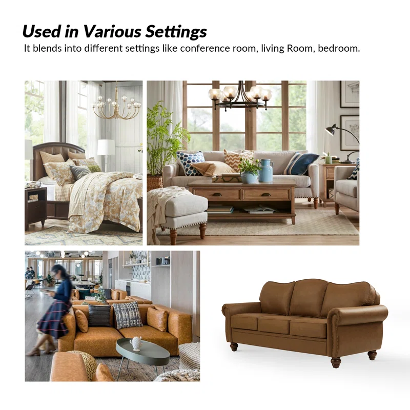- Rolled Armrests: The sofa’s rolled arms offer a traditional, comfortable profile while offering a stylish, comfortable resting place, creating a classic look that enhances both style and comfort.